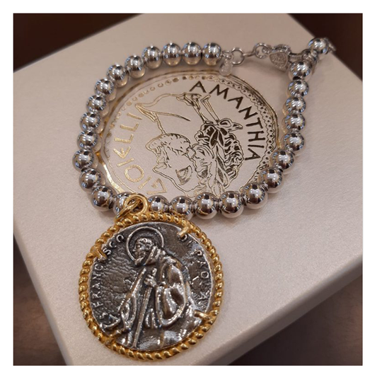Bracciale sfere Argento con moneta San Francesco di Paola - BR.SF.04