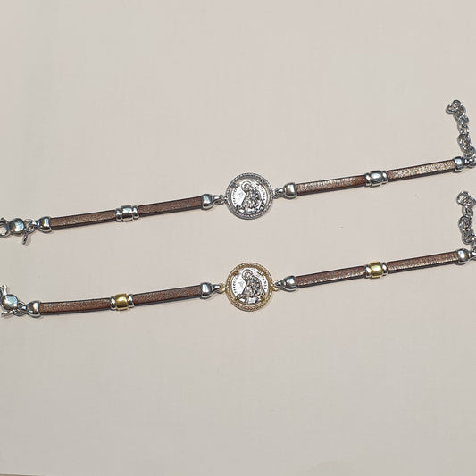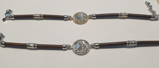Bracciale Cuoio San Francesco di Paola in Argento - BR.SF.C