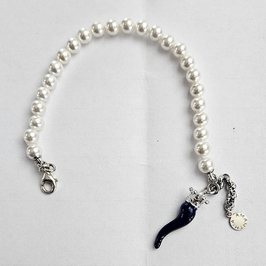 Bracciale perla con cornetto argento - BRPPCOARG.BIA
