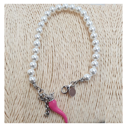 Bracciale perla con cornetto fuxia - BRPPCOFUX