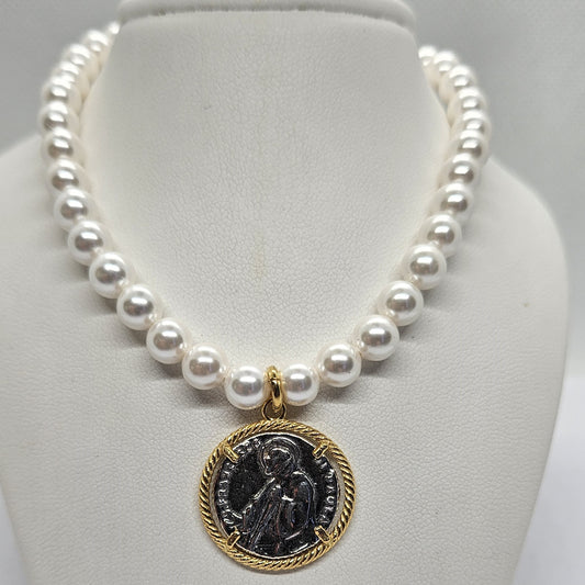 Collana Pasta Corallo con Moneta d’epoca in argento 925 - CP.19.70