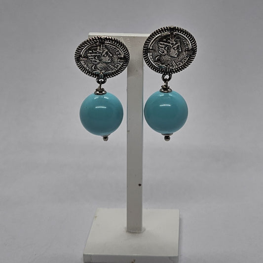 Orecchini pendenti Moneta in Argento e Turchese - OP.TU