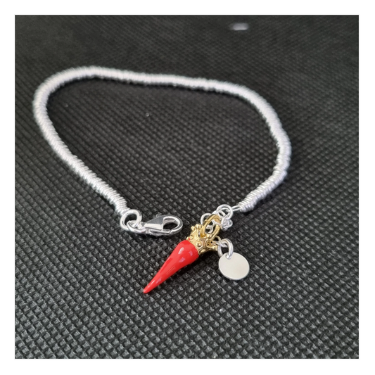 Bracciale anellini argento con Ciondolo Porta Fortuna "Ida Miceli DNY"-Cod.BR.BI.CI.DNY