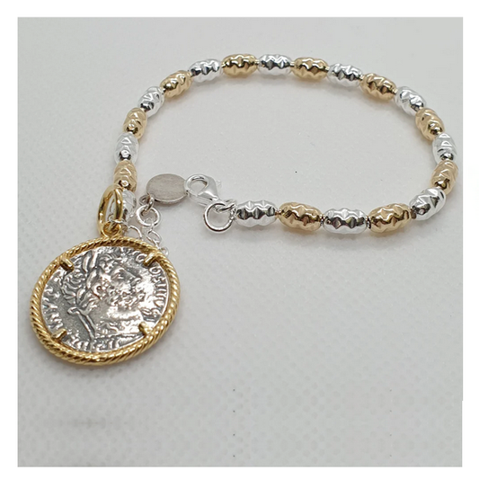 Bracciale rigido 5 fili Argento bicolore con moneta d'epoca - BR.011
