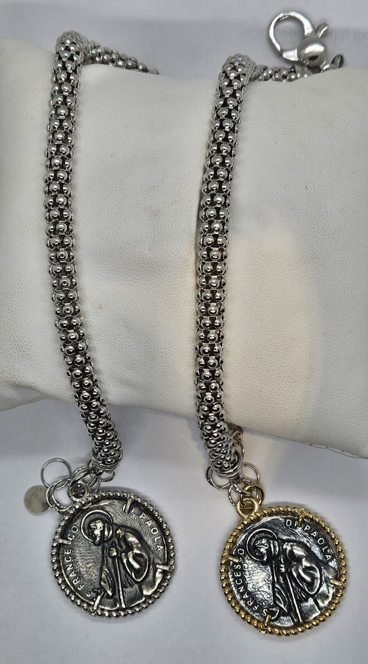 Bracciale fune con Moneta San Francesco di Paola in Argento - BR.SF.12