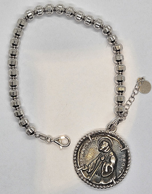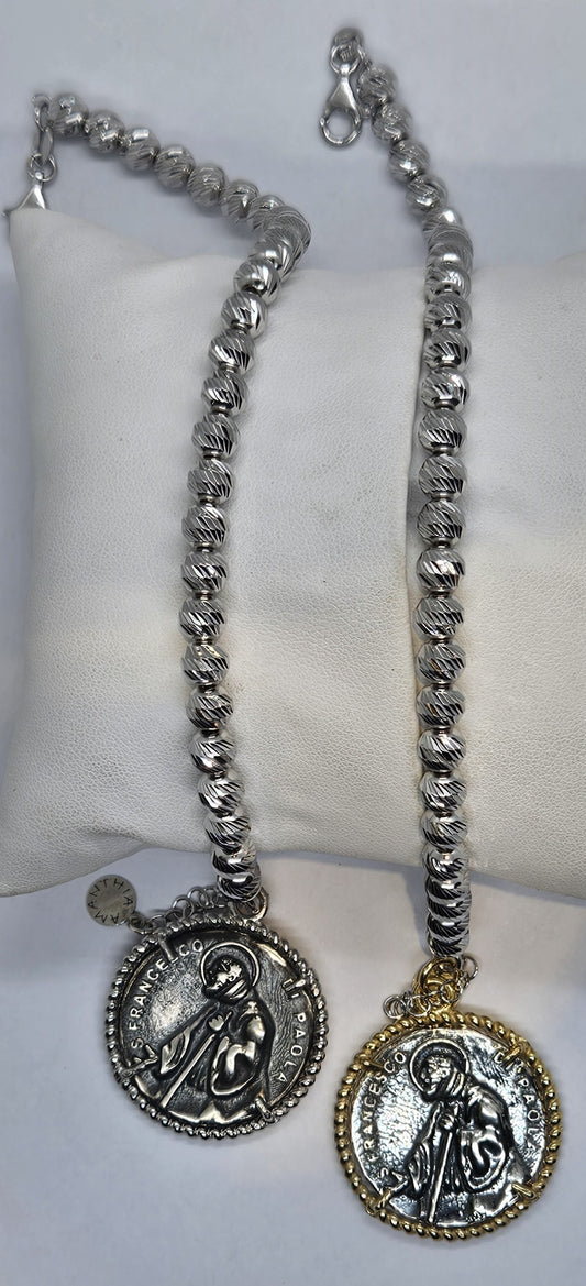 Bracciale Sfere rigate con Moneta San Francesco di Paola in Argento - BR.SF.13