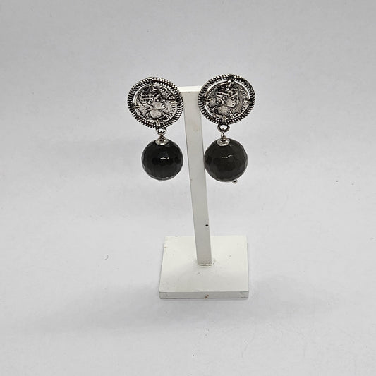 Orecchini pendenti Moneta in Argento e Onice - OP.ON